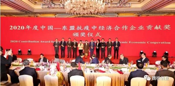 4月16日,由中国——东盟商务理事会和东盟北京委员会(由东盟十国驻华大使组成)联合举办的“2021年中国——东盟迎新春话合作系列活动”在北京举行。山东魏桥创业集团荣膺“2020年度中国——东盟抗疫中经济合作企业贡献奖”。