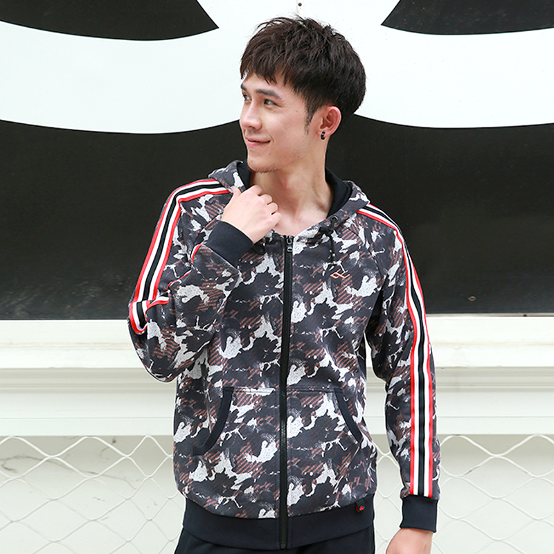 编号:9313 名称:男士拉链连帽卫衣印染浪花宽松休闲迷彩风户外跑步