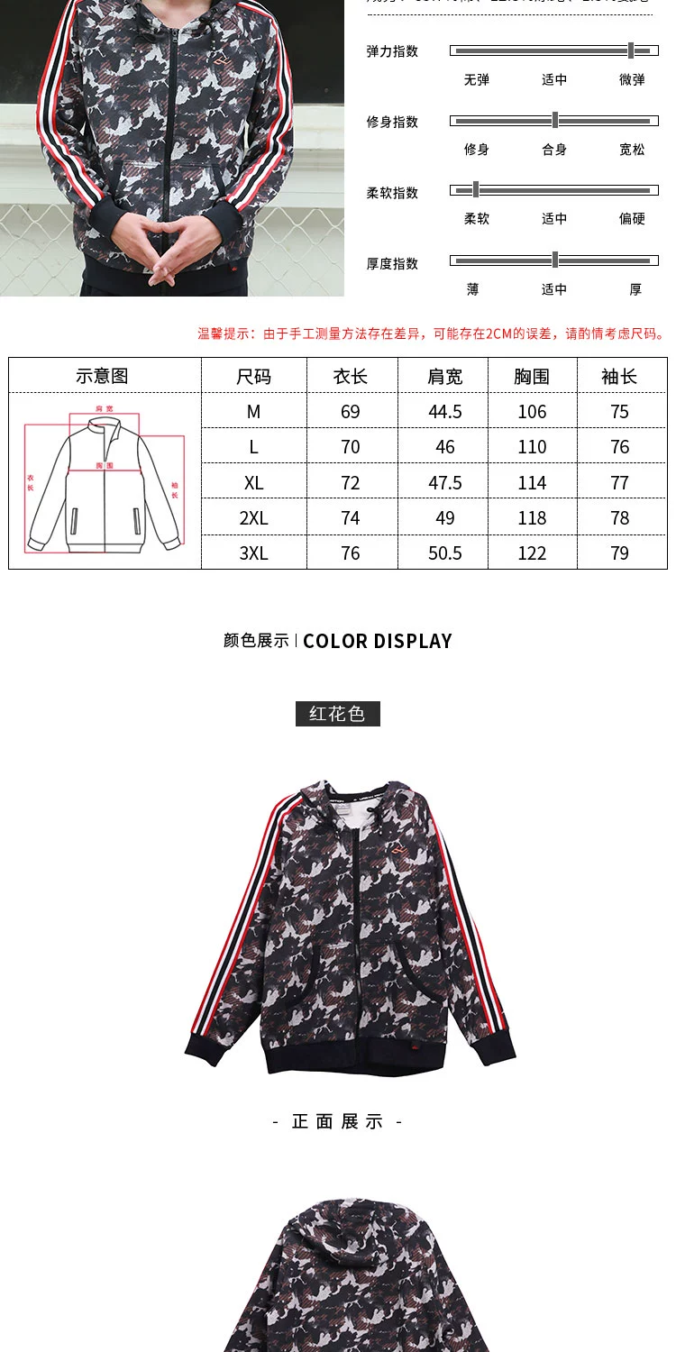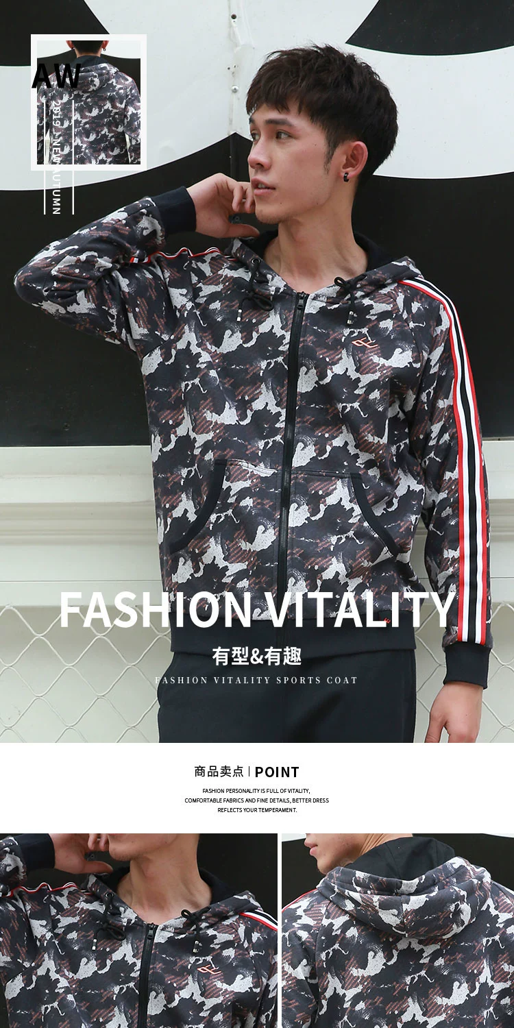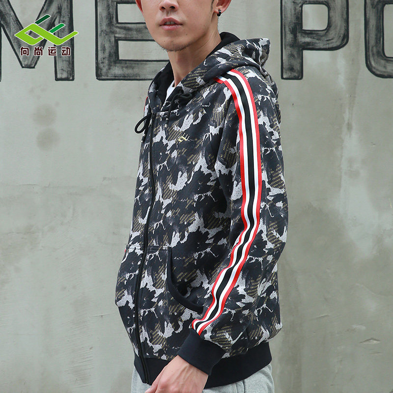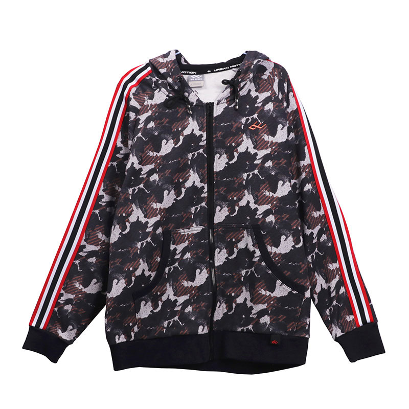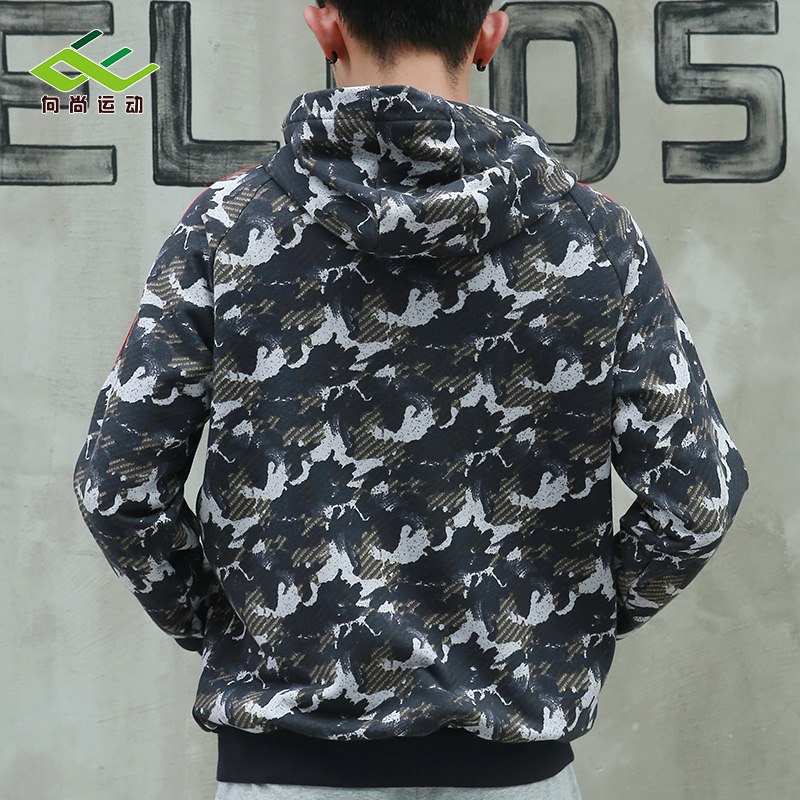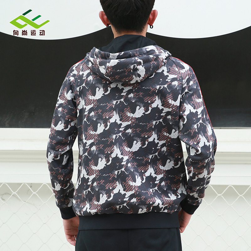 男士拉链连帽卫衣印染浪花宽松休闲迷彩风户外跑步