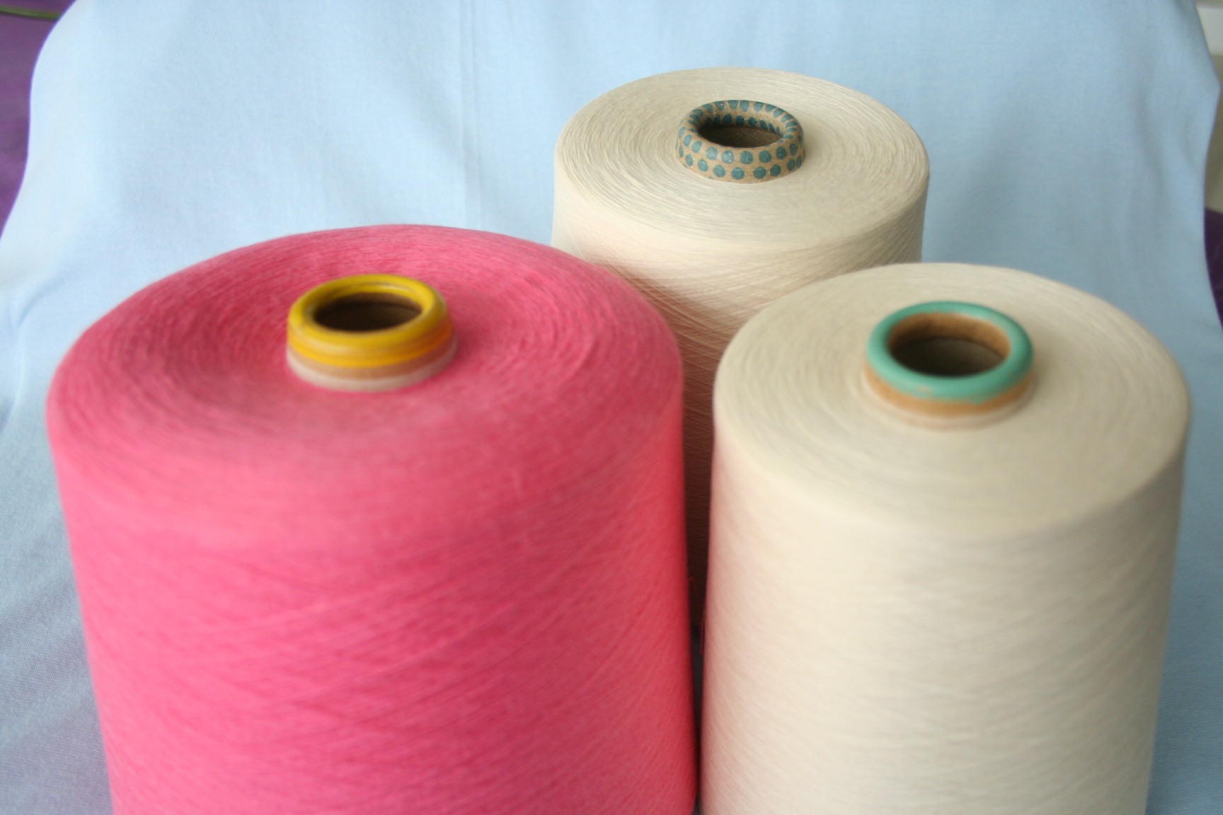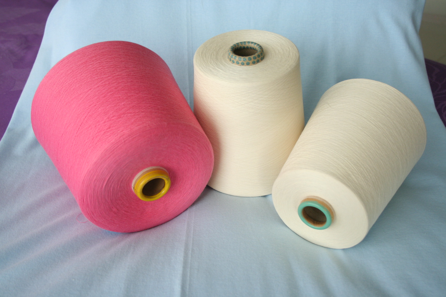 我司普梳纱线可纺支数为30英支-45英支,可以纺单股纱,也可以纺两股和多股纱线。可以纺纯棉纱也可以纺混纺纱线,常做的混纺纱线包括涤与棉混纺、涤粘混纺、棉莫代尔混纺、棉与天丝混纺等。