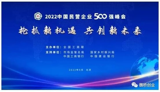 中华全国工商业联合会9月7日发布“2022中国民营企业500强榜单”和“2022中国制造业民营企业500强榜单”,魏桥创业以销售收入4111.35亿元位列2022中国民营企业500强榜单第11位、中国制造业民营企业500强榜单第6位。