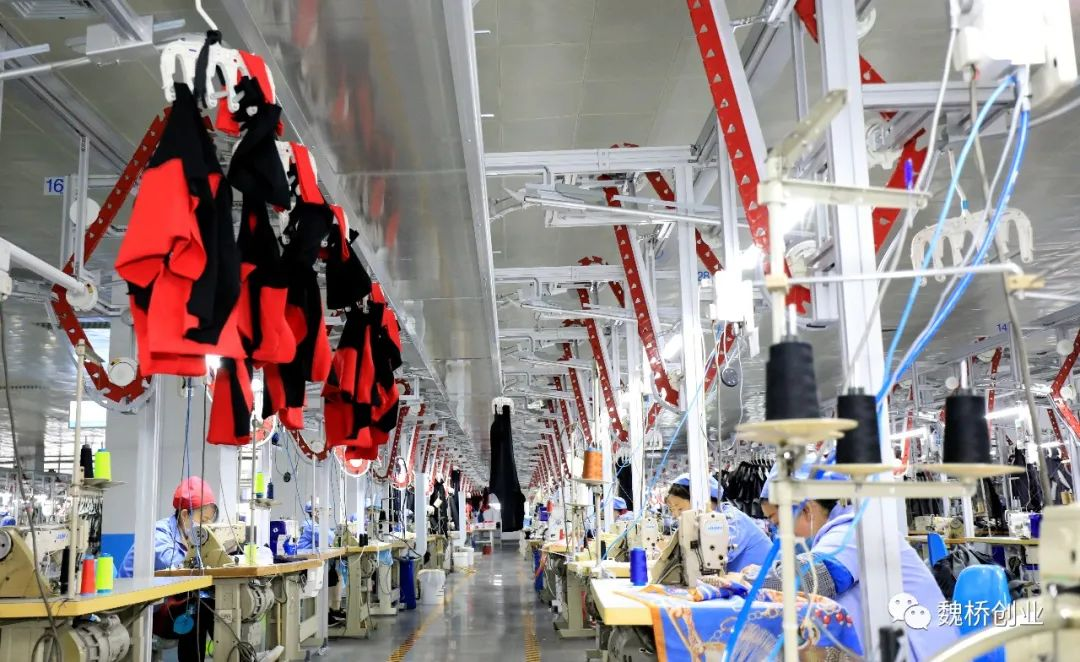 山东向尚服饰文化有限公司数字化、智能化流水线推动产业全面升级项目,运用物联网和信息化技术,将新型的生产管理系统、自动化设备系统应用到生产中,引进世界一流设备,上线自动裁床、自动拉布、智能缝制吊挂线和智能整装吊挂线等,多款式、多尺码、多颜色同时在线加工,一个站点可以执行多个订单,还可以随时插入新订单,同步上线,无缝换款,灵活切换各个品种和批次,更好地应对未来个性化定制趋势。