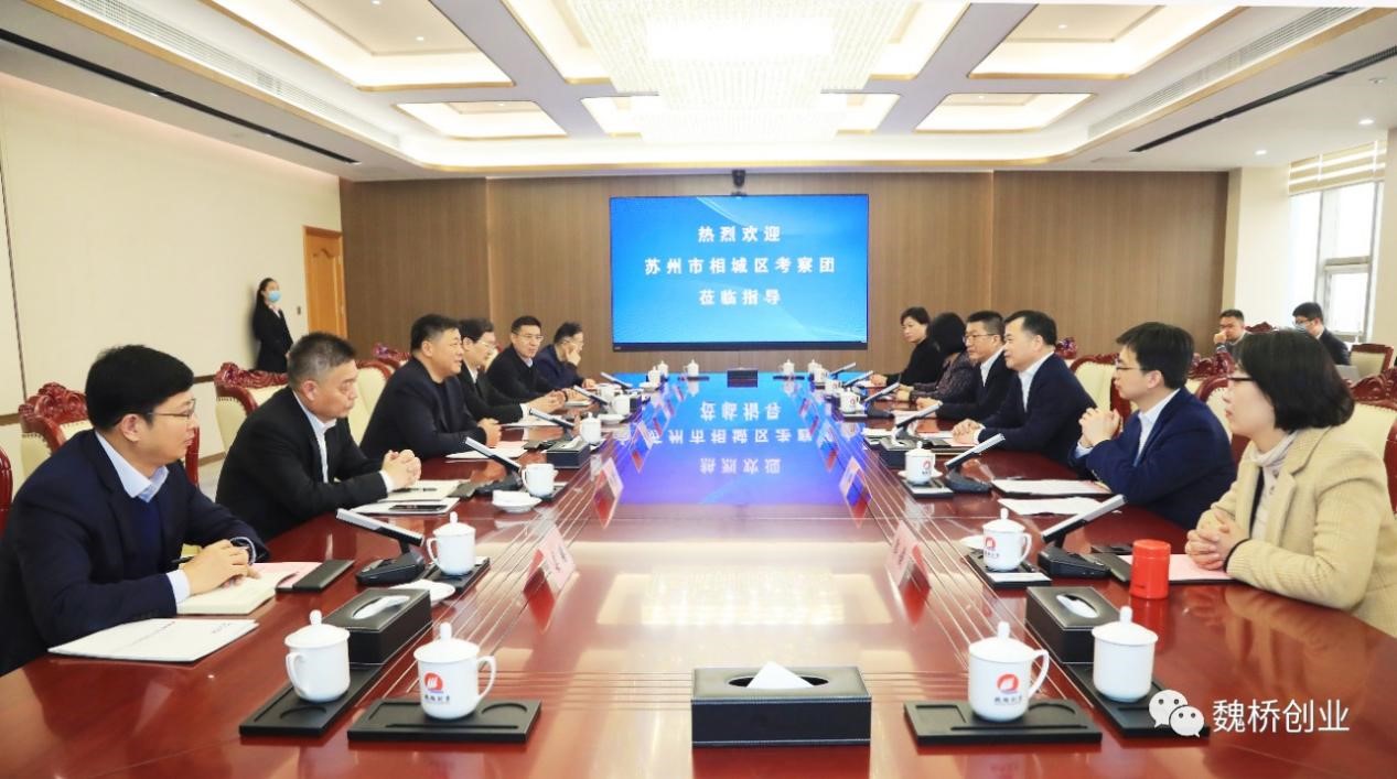 2月7日,苏州市相城区委副书记、区长张伟率考察团来魏桥创业集团交流考察。集团公司董事长张波与张伟一行就进一步加深了解与合作举行座谈会。