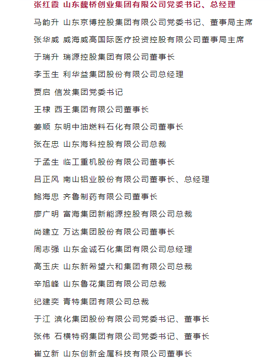 2022年度省民营企业家“挂帅出征”百强榜名单是根据《山东省促进民营经济高质量发展2022年十大专项行动方案》要求,由省促进非公有制经济发展工作领导小组办公室组织开展评选工作,经过企业自主申报、各市领导小组推荐、专家评审、征求有关部门意见等程序,确定了名单。这份百强榜更突显入榜企业所能发挥的“挂帅”作用,重点围绕“十强”产业特别是11条标志性产业链链主企业、特色产业集群龙头企业,延链补链强链重点企业、国家级单项冠军及专精特新“小巨人”企业、“瞪羚”“独角兽”等高成长性中小企业,对民营企业家进行优中选优。
