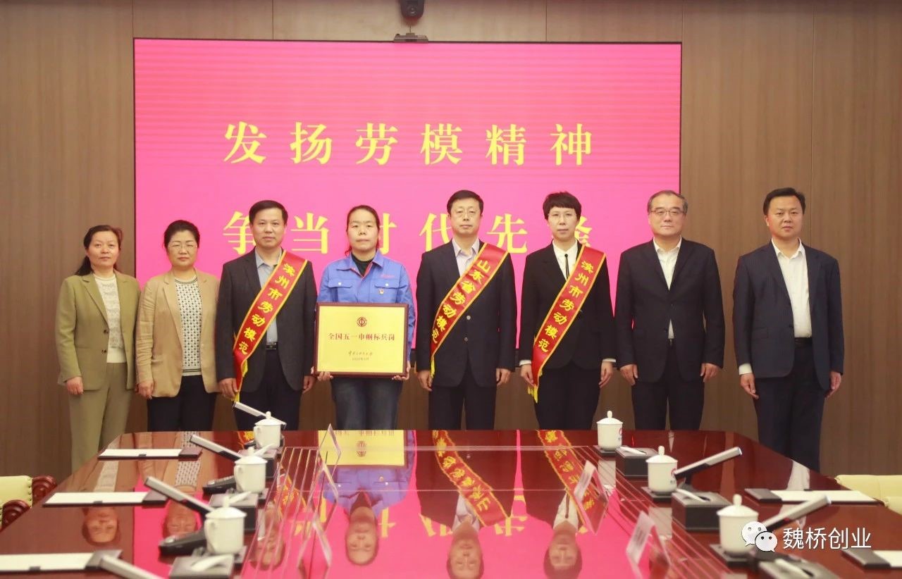 4月28日,五一国际劳动节即将到来之际,滨州市副市长、邹平市委书记吕明涛来我集团看望慰问省市劳动模范,并向荣膺“全国五一巾帼标兵岗”的魏桥纺织绿色智能化车间颁发奖牌。市委常委、市委办公室主任郭辉,市人大常委会副主任韩颖一同慰问。集团公司党委书记、总经理张红霞参加慰问活动。