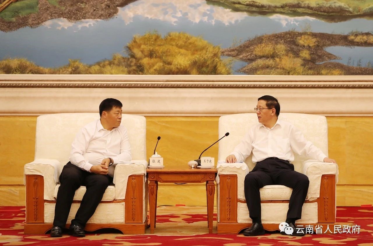 8月21日,云南省委副书记、省长王予波在昆明与山东魏桥创业集团有限公司董事长张波一行举行工作会谈。