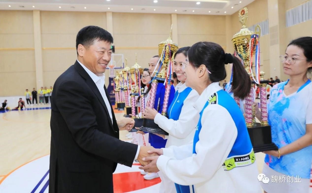 10月6日下午,魏桥创业集团2023年职工体育运动会颁奖仪式在集团总部篮球馆举行。张波、张红霞、赵素文、杨丛森等公司领导为本届运动会获奖个人和团体颁奖,并在颁奖前与干部职工一起观看了男子五人制篮球冠军“争夺战”。