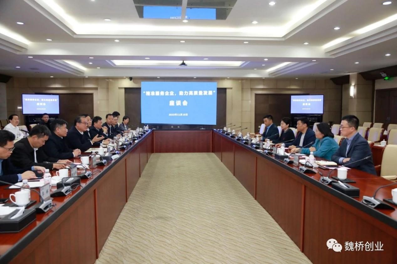 11月16日, 滨州市副市长、邹平市委书记吕明涛,邹平市委副书记、市长张谦,邹平市委市政府、市人大、市政协等领导班子成员来我集团开展“精准服务企业 助力高质量发展”活动,召开座谈会详细了解重点项目建设情况,认真倾听企业经营发展中遇到的难点堵点问题,现场研究解决方案,以精准服务护航企业高质量发展。集团公司董事长张波,集团公司党委书记、总经理张红霞参加座谈。