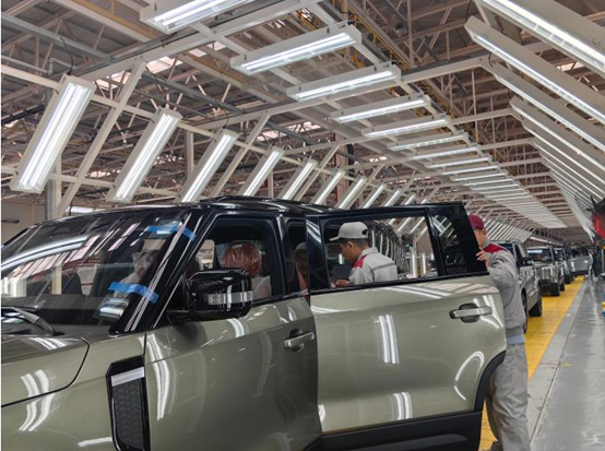 在北京汽车制造厂的生产线上,记者看到了即将交付的极石01越野车。据介绍,这款车是洛轲智能、魏桥创业集团及北京汽车制造共同打造的智能化新能源汽车品牌。极石汽车以其独特的背景和卓越的技术实力,迅速受到市场的青睐。这是一款“为户外而生”的智能豪华SUV,车身已经小部分应用了魏桥的轻量化新材料。陆付军还非常自豪地向记者介绍起“国宝品牌”212越野,这是一款曾经为国人熟知的老牌越野车,2024年6月,搭载众多魏桥铝合金零部件的新款212越野将重装发布。