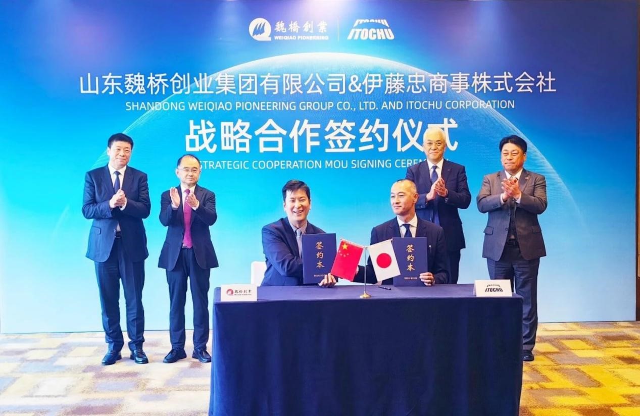 8月28日下午,山东魏桥创业集团与日本伊藤忠商事株式会社战略合作签约仪式在青岛山港凯悦酒店举行。滨州市委书记宋永祥,魏桥创业集团董事长张波,伊藤忠商事株式会社执行董事、金属公司总裁猪股淳出席签约仪式并致辞。