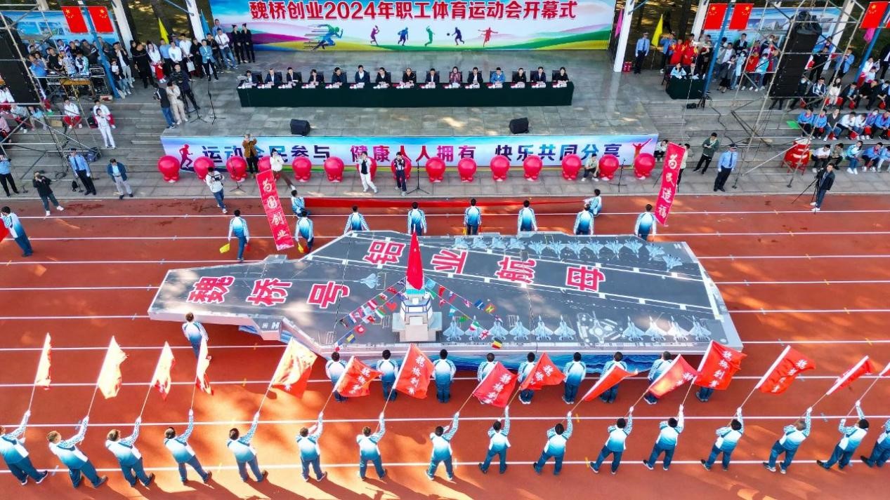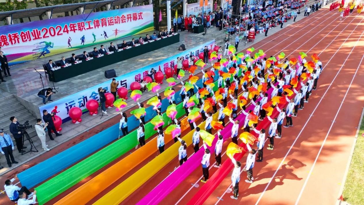 为庆祝中华人民共和国成立75周年,展现魏桥创业人拼搏进取、昂扬向上的精神风貌,进一步丰富、带动群众性体育健身活动蓬勃开展,以更加饱满的热情和干劲,奋进新征程、再创新佳绩,奋力推进中国式现代化的魏桥实践,9月23日上午,魏桥创业集团2024年职工体育运动会开幕式在魏桥创业文化广场体育场举行。