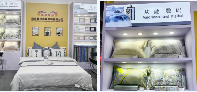 家纺产品主要涵盖健康环保、时尚功能、高支高密以及常规品种四大系列;向尚服饰此次展示镶嵌纺、中空纱、智能穿戴等系列产品。每一款产品都匠心独具,旨在满足不同顾客需求。
