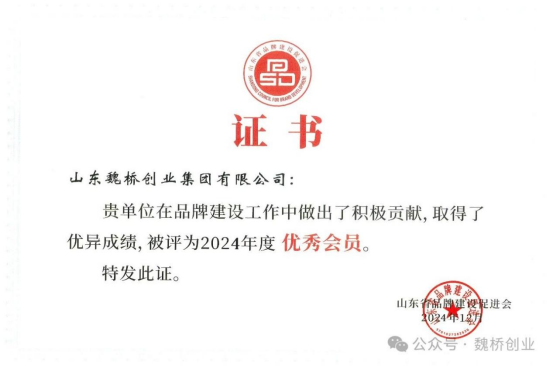 12月19日,由山东省品牌建设促进会、凤凰网山东频道主办的“2024山东品牌年会暨ESG建设与品牌价值提升高峰论坛”在济南举办。会上,魏桥创业集团被山东省品牌建设促进会评为“2024年度优秀会员”;同时,集团《培育发展新质生产力 筑牢高质量发展硬支撑》入选山东品牌建设优秀案例,提报的ESG案例《深入践行ESG理念 持续推动高质量发展》入选山东企业ESG建设优秀案例库。