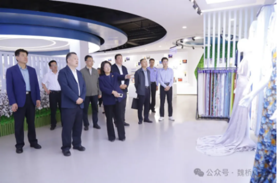 张庆勇一行实地察看了魏桥纺织研发创意成果展厅和绿色智能化工厂,深入了解企业在科研创新、智能制造及品牌建设等方面的最新进展,并详细询问了生产流程优化和产业转型升级的相关情况。张红霞向张庆勇介绍了集团纺织板块发力新品研发、市场拓展、数智化转型等方面的具体举措,以及取得的显著成效。