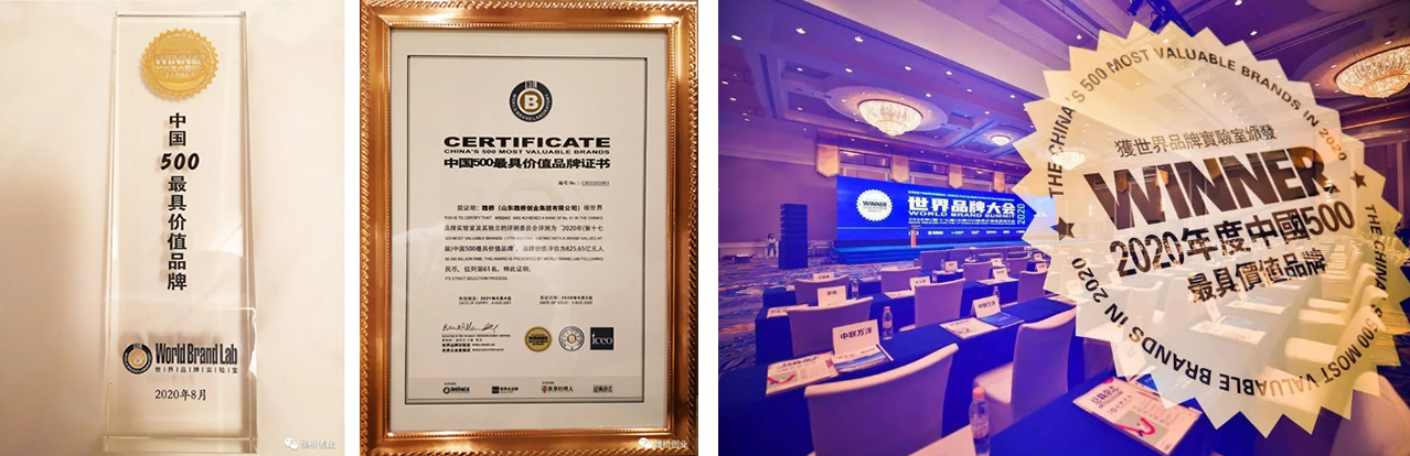 由世界品牌实验室(WorldBrand Lab)主办的(第十七届)“世界品牌大会”于8月5日在北京举行,会上发布了2020年《中国500最具价值品牌》榜单,山东魏桥创业集团有限公司的“魏桥”品牌以825.65亿元的价值,位居榜单第61位,品牌价值比去年提升69.73亿元。