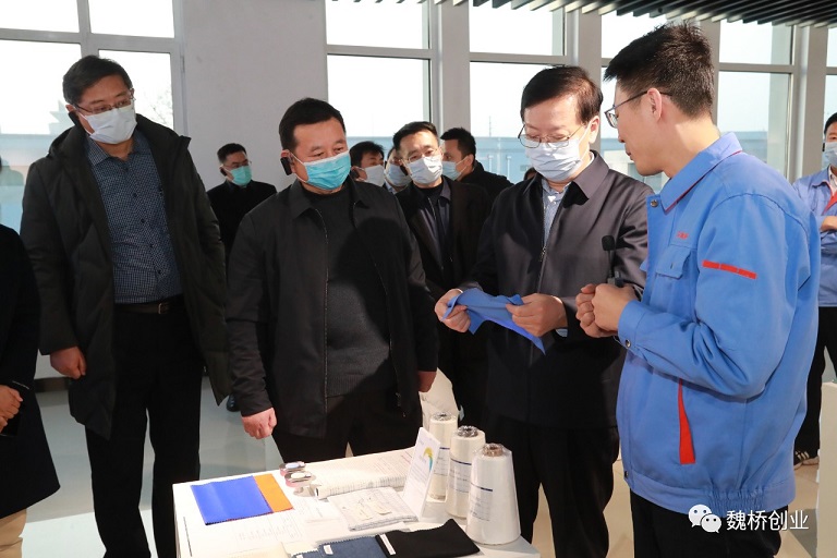 集团公司副总经理魏家坤陪同侯成君一行参观了魏桥纺织研发中心和绿色智能纺织一体化工厂。在研发中心,侯成君听取了负责人对我公司最新研发产品和各类获奖面料的相关介绍,当了解到我公司成功研发一次织造成型石墨烯立体无缝羽绒被、石墨烯纺织产品、抗菌抑菌面料、再生纤维循环利用产品等情况介绍时,侯成君连连点头称赞,对我公司坚持创新驱动,不断加大研发投入,以更高研发水平促进产品结构调整和企业转型升级给予充分肯定。