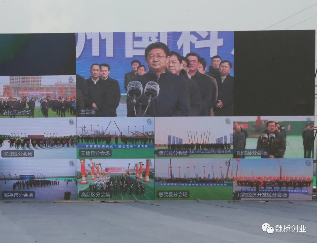开工仪式在滨州经济技术开发区设主会场,在其他县(市、区)设分会场。邹平市分会场设在山东宏顺中欧循环科技产业园项目现场。皮台田、胡云江等邹平市领导,魏桥创业集团董事长张波,以及德国顺尔茨集团全球总裁苏汉先生等出席分会场活动。