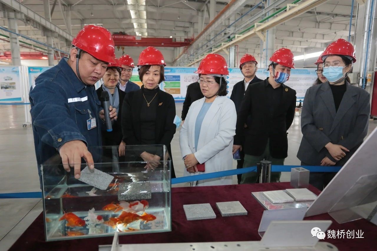 集团公司党委书记、总经理张红霞陪同阎岩一行参观了企业展馆、张士平纪念馆、魏桥纺织绿色智能一体化第三分厂、魏桥纺织研发中心和魏桥轻量化基地,并介绍了企业可持续发展和双碳工作开展情况。
