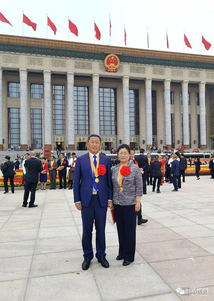 在北京人民大会堂前,张红霞与来自滨州的全国优秀党务工作者王宝军合影留念